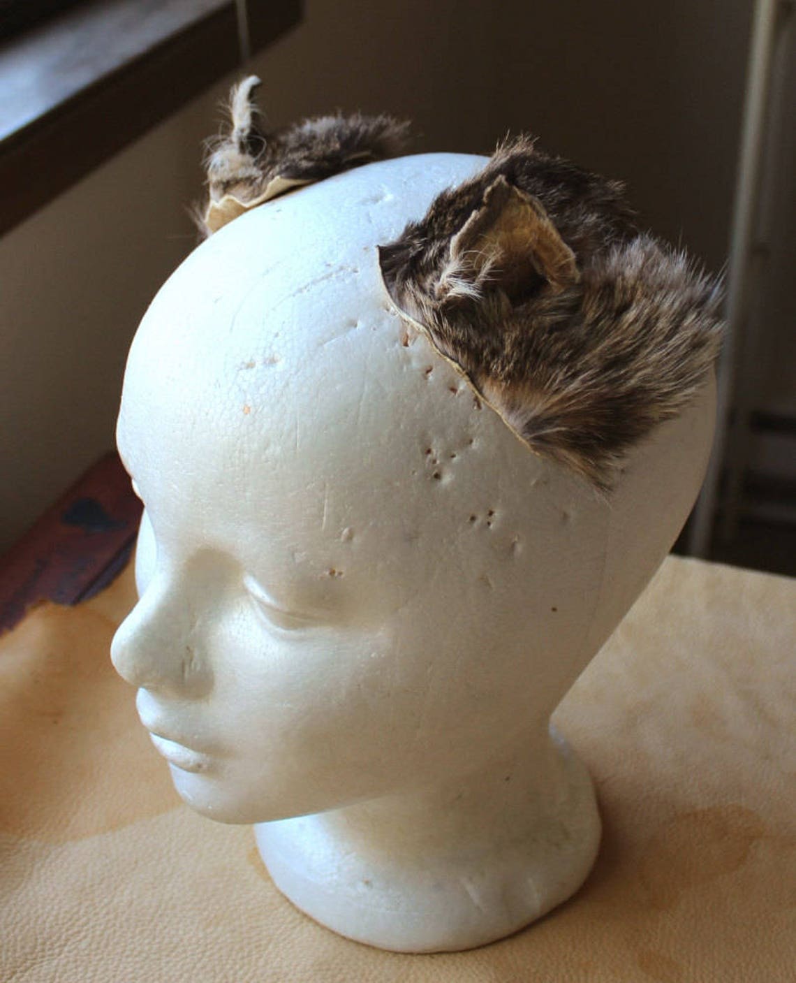 The ears I make are from salvaged craft-quality faces; I have done my best to repair damage and reshape the ears. However, please allow these ears to have their odd little idiosyncracies, like each ear deciding it wants to point in a *slightly* different direction. It gives them quirky personality!