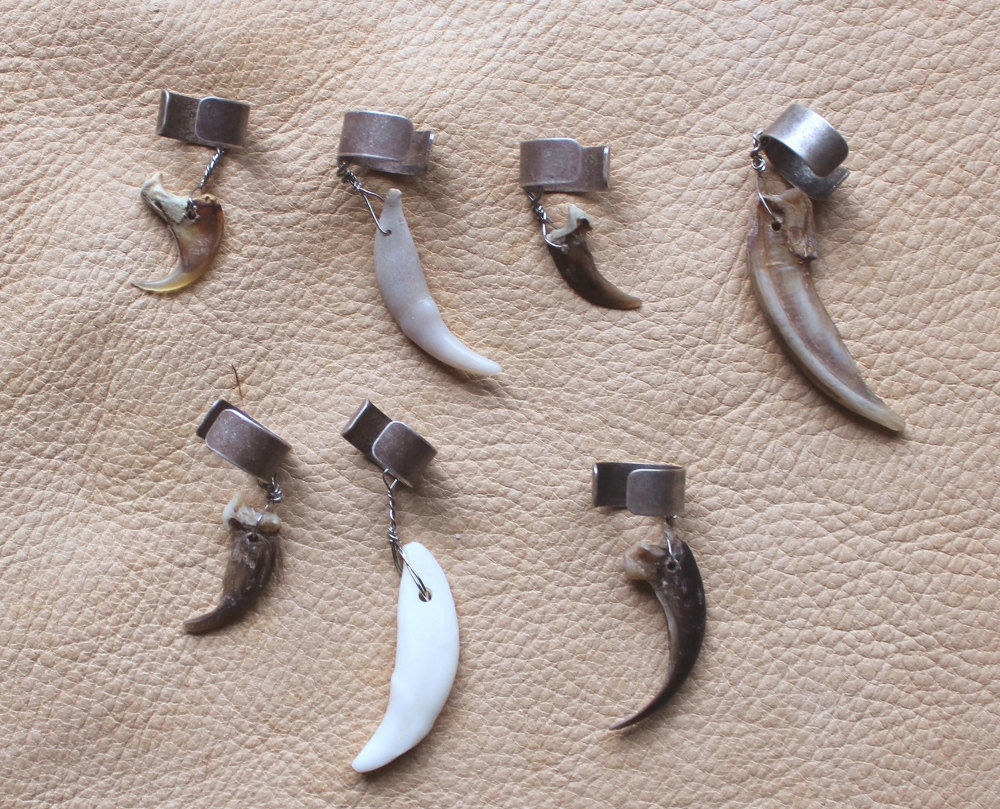Set of SEVEN claw and tooth ear cuffs fox coyote bobcat badger porcupine